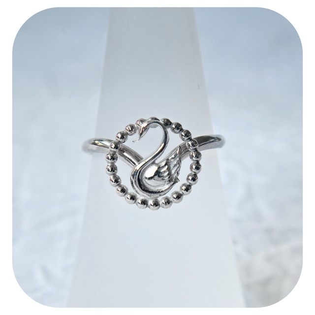 毎年、冬になるとシベリアから信州・安曇野へと飛来するコハクチョウがモチーフ。 穏やかな水辺に佇む姿を、繊細な曲線のデザインで表現しました。 シルバー925ならではの上品な輝きが、季節を問わず手元に静かな美しさを添えます。 共通デザインの「白鳥のブローチ」とのセット使いもおすすめです。 ◆素材:SILVER925 ◆サイズ:12号~15号(1号刻み) 白鳥の大きさ:縦約9.1mm アームの幅(太さ):約1.7mm 厚さ:約1.0mm 重さ:約1.5g(12号の場合) ◇金属アレルギーに対応した商品ではありません。お肌に合わない場合は使用を中止してください。 ◇ひとつずつ心を込めて手作業で製作しております。色や形に若干の違いが生じる場合がございます。 ◇繊細なデザインのため、強い力を加えると変形や破損の恐れがあります。お取り扱いはやさしくお願いいたします。