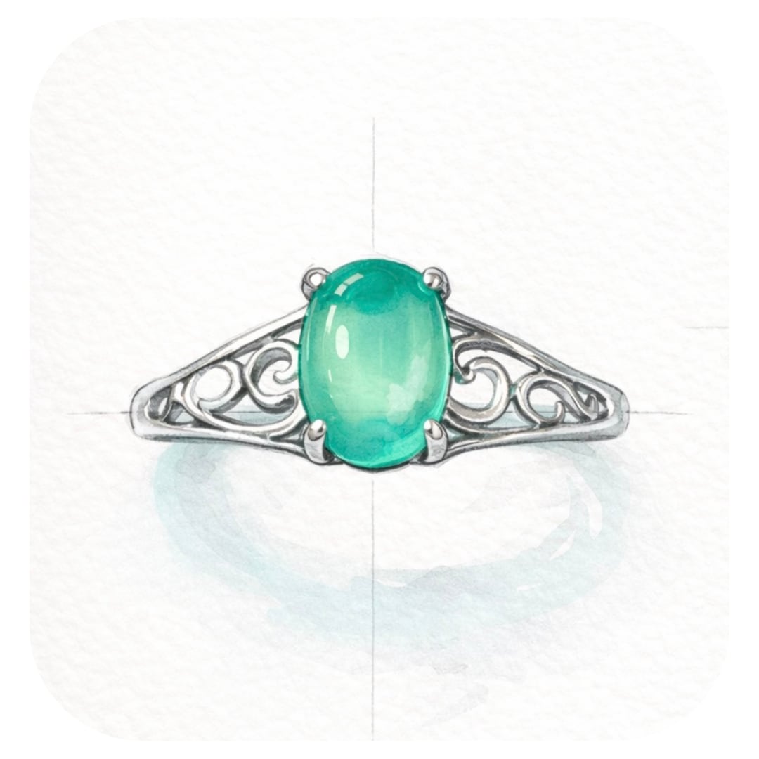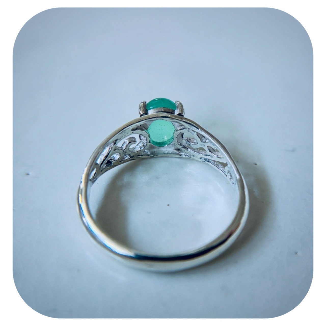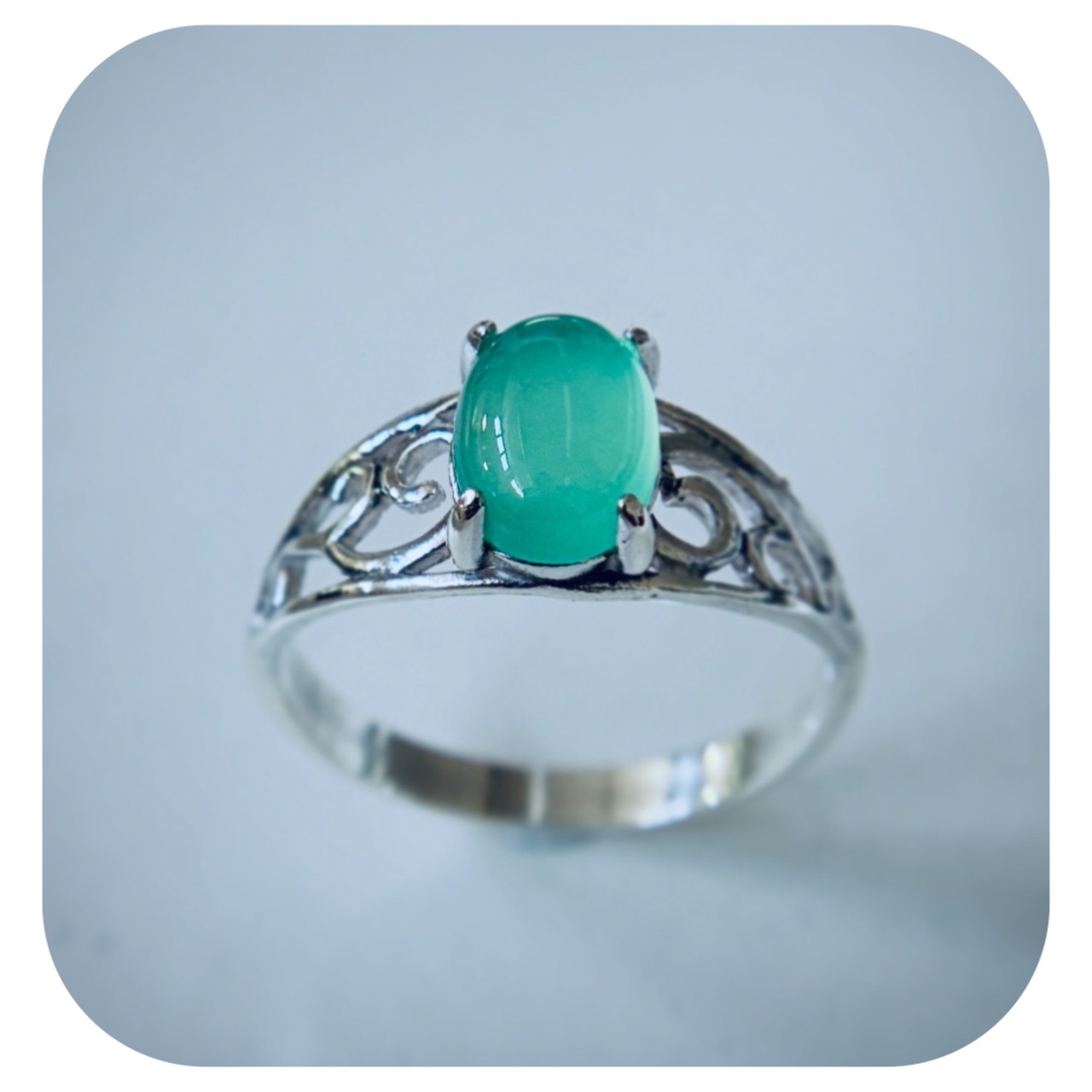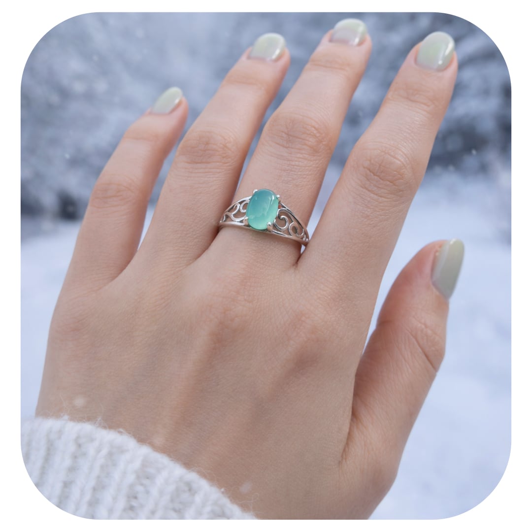 清楚な輝きを放つ、クリソプレーズのリング。